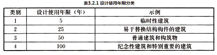 3.2.1 民用建筑的设计使用年限应符合表3.2.1的规定。