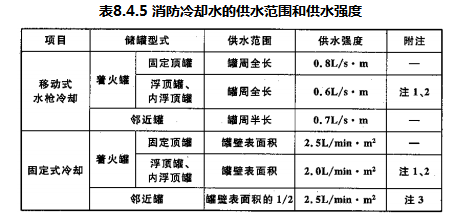 8.4.5 本条对可燃液体地上立式储罐设固定或移动式消防冷却水系统作出规定。