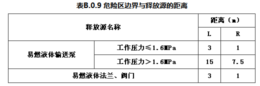 3 危险区边界与释放源的距离应符合表B.0.8的规定。
