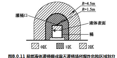 B.0.10 易燃液体灌桶间爆炸危险区域划分(图B.0.10),应符合下列规定: