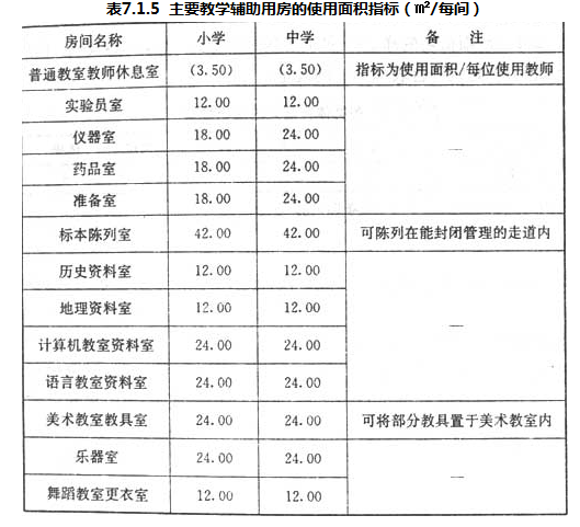 7.1.5 主要教学辅助用房的使用面积不宜低于表7.1.5的规定。