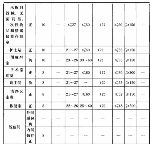 注:1 负压手术室室内压力一栏应为“负”。