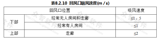 8.2.10 回风口的吸风速度宜按表8.2.10选用。