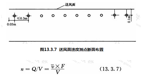 2 在达到上述点风速的条件后,换气次数应按下式计算,换气次数检测结果不应小于本规范表4.0.1的规定,不宜超过设计值的15%。