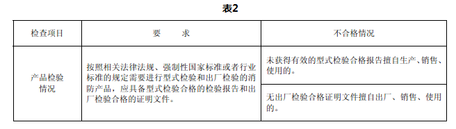 消防产品质量应当按照相关法律法规、强制性国家标准或者行业标准的规定,经型式检验和出厂检验合格。产品检验情况检查项目、要求及不合格情况见表2。