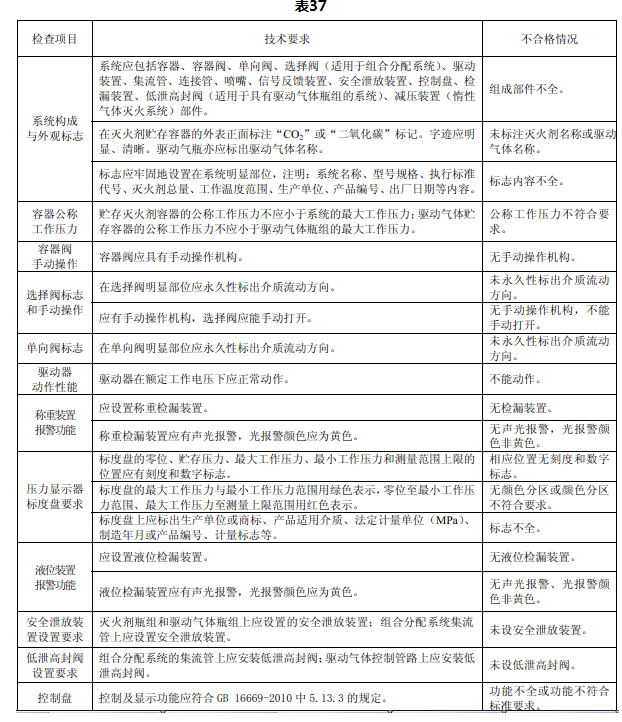 检查项目、技术要求和不合格情况见表37。