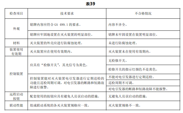 检查项目、技术要求和不合格情况见表39。