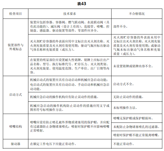 检查项目、技术要求和不合格情况见表43。