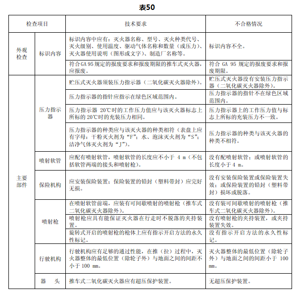 检查项目、技术要求和不合格情况见表50。