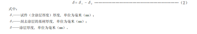 随机抽取已涂刷涂料的试件一块。选3个测点用精度为0.02mm的游标卡尺测量试件涂刷涂料后和涂刷前的厚度,用公式(2)计算单点涂层厚度,涂层厚度为三个测试点涂层厚度的平均值: