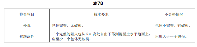 分别将三个完整的阻火包从5 m高处自由下落到混凝土水平地面上,观察包体是否破损。