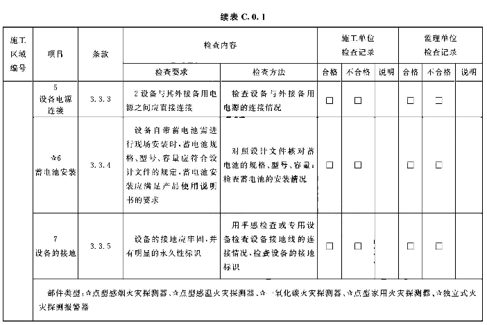 附录C 火灾自动报警系统材料、设备、配件进场检查和安装过程质量检查记录