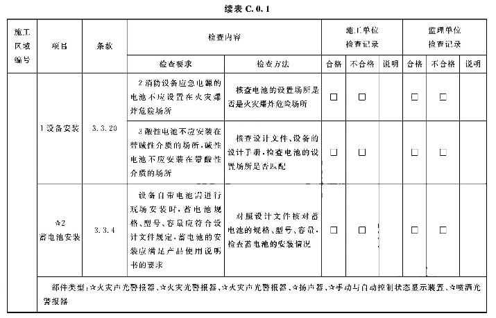 C.0.3 表C.0.1中带有“☆”标的项目和检查内容为可选项,当系统的进场检验、安装不涉及此项目或检查肉容时,检查记录不包括此项目或检查内容。