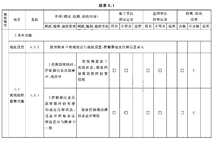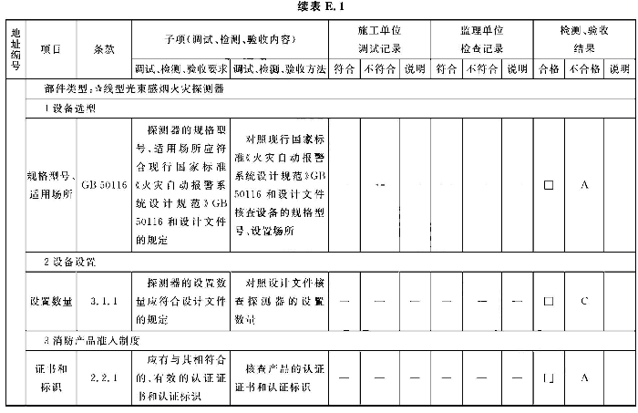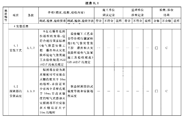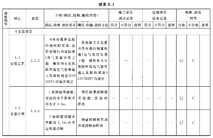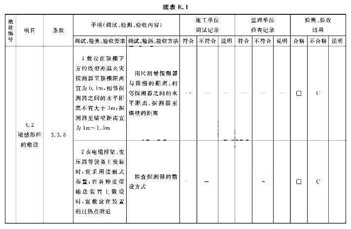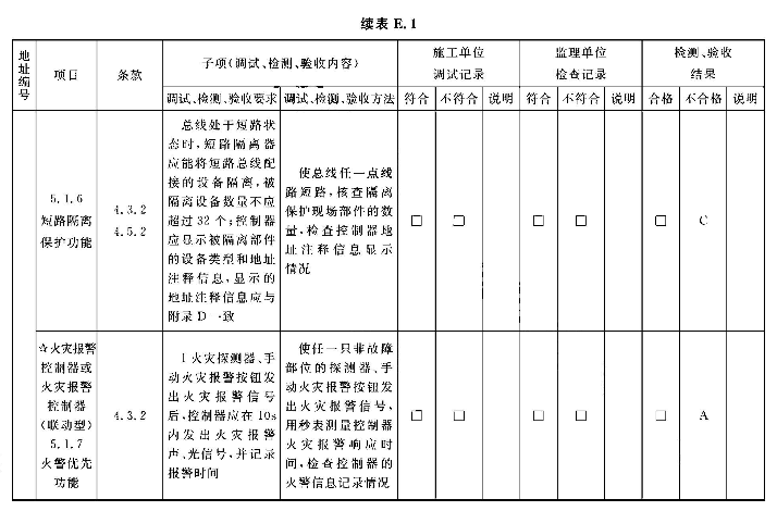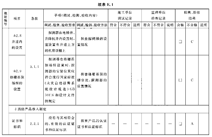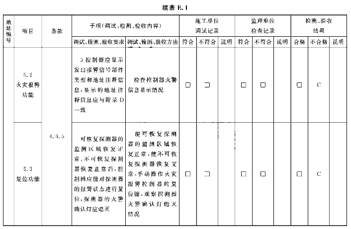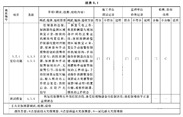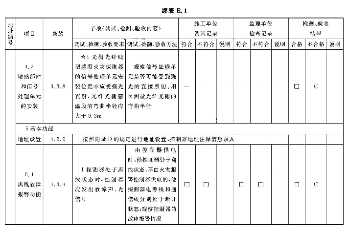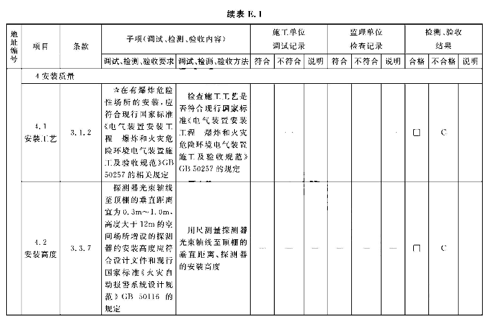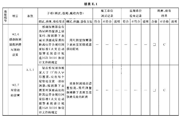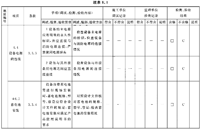E.0.3 本附录各表中带有“☆”标的项目和子项内容为可选项,当现场部件的调试、工程检测、工程验收不涉及此项目或子项时,调试、检测、验收记录不包括此项目或子项。
