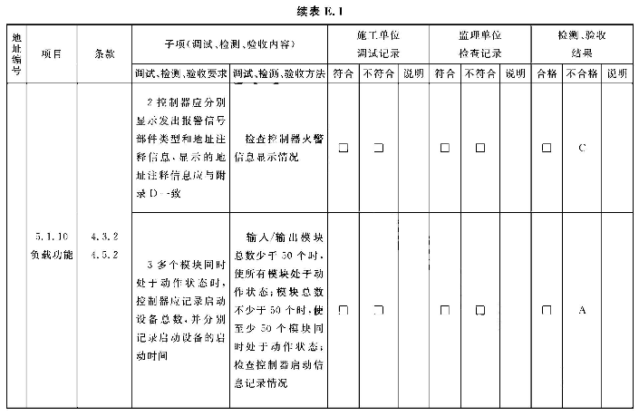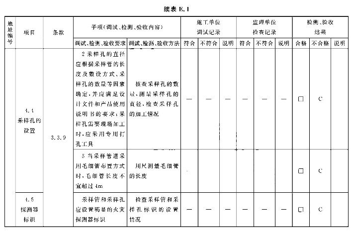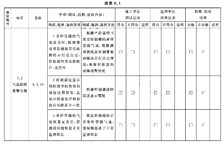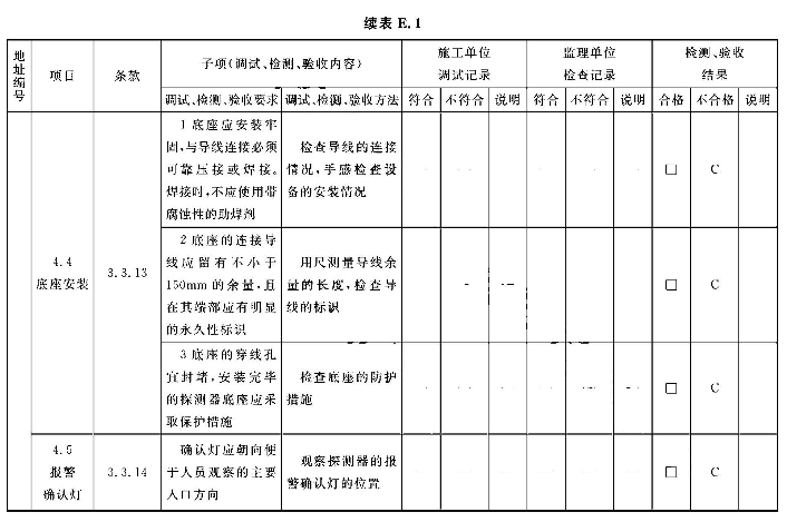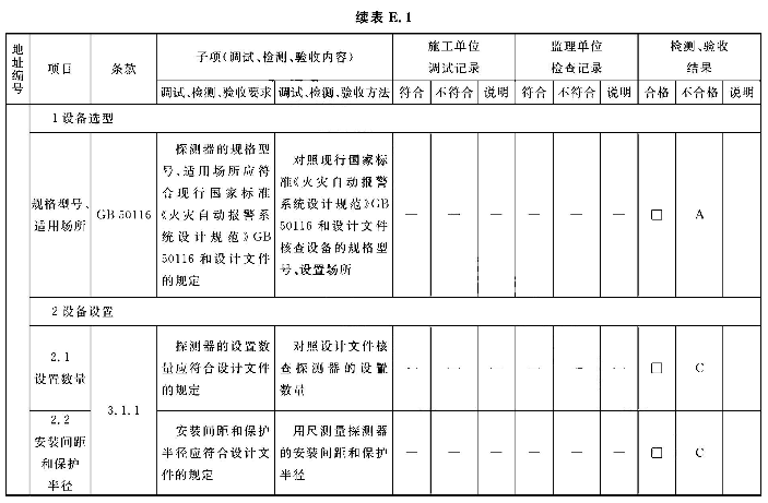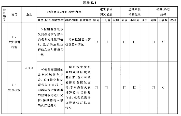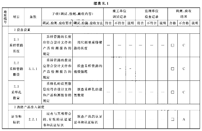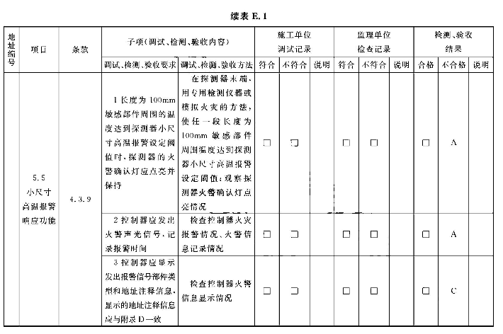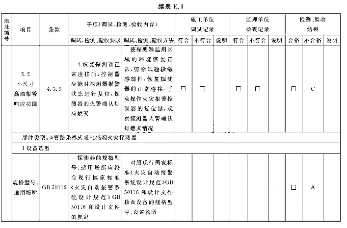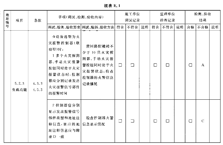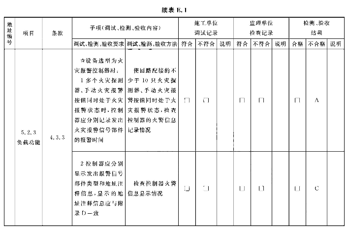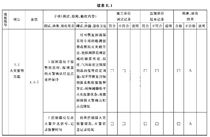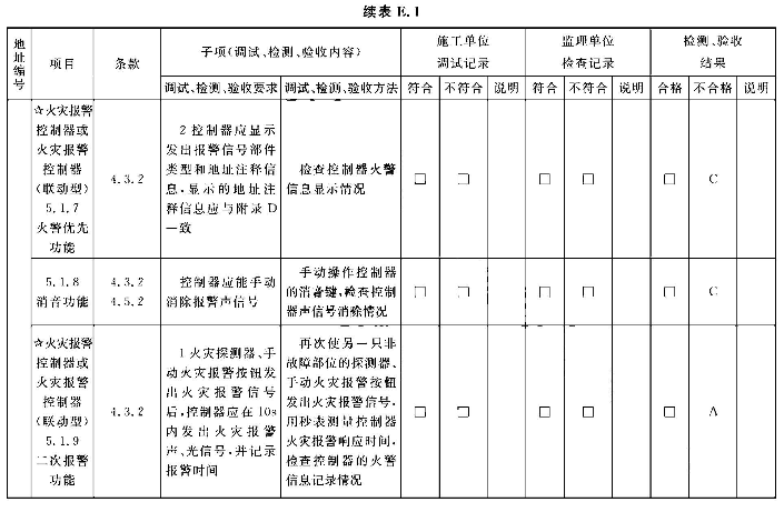 E.0.3 本附录各表中带有“☆”标的项目和子项内容为可选项,当现场部件的调试、工程检测、工程验收不涉及此项目或子项时,调试、检测、验收记录不包括此项目或子项。