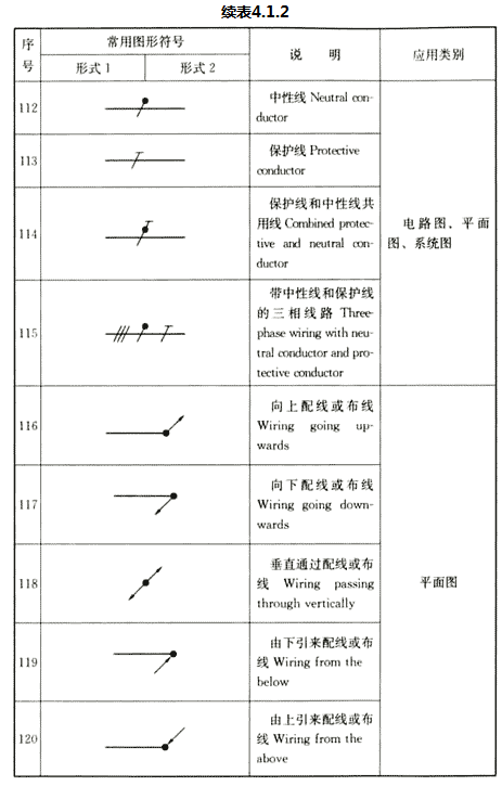 4.1.4 图样中的电气线路可采用表4.1.4的线型符号绘制。