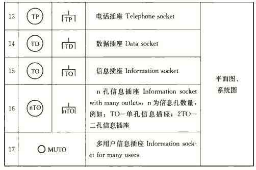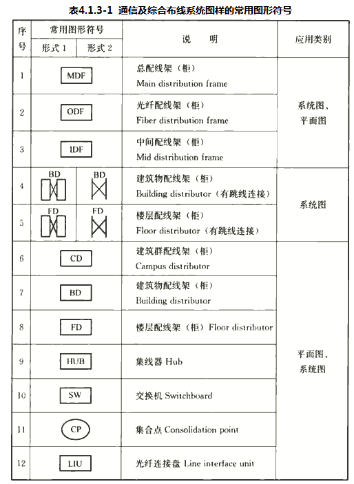 1 通信及综合布线系统图样宜采用表4.1.3-1的常用图形符号。