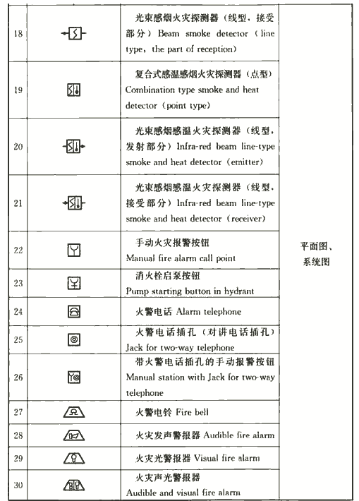 火灾自动报警系统图样宜采用表4.1.3-2的常用图形符号。