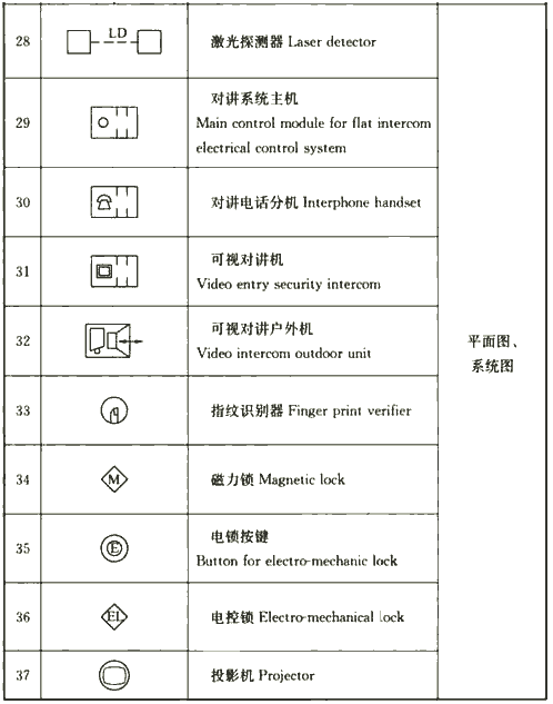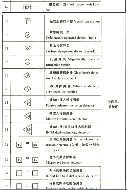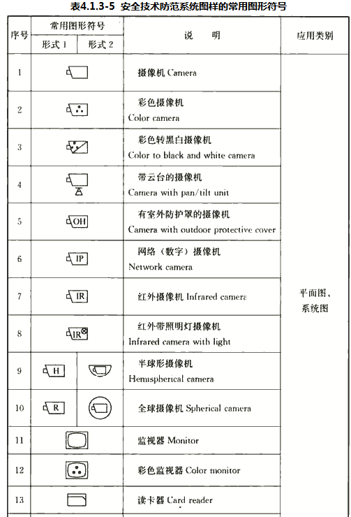 安全技术防范系统图样宜采用表4.1.3-5的常用图形符号。