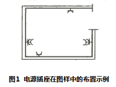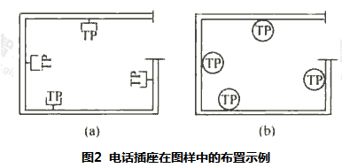 3)电话插座在图样中的布置示例见图2,文字标注方位为自设计文件下方和右侧为视图正向。