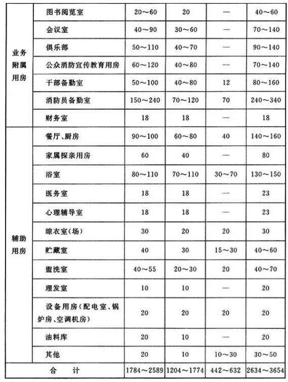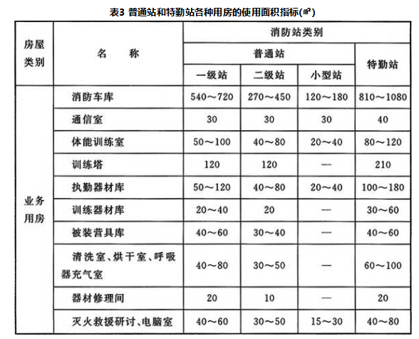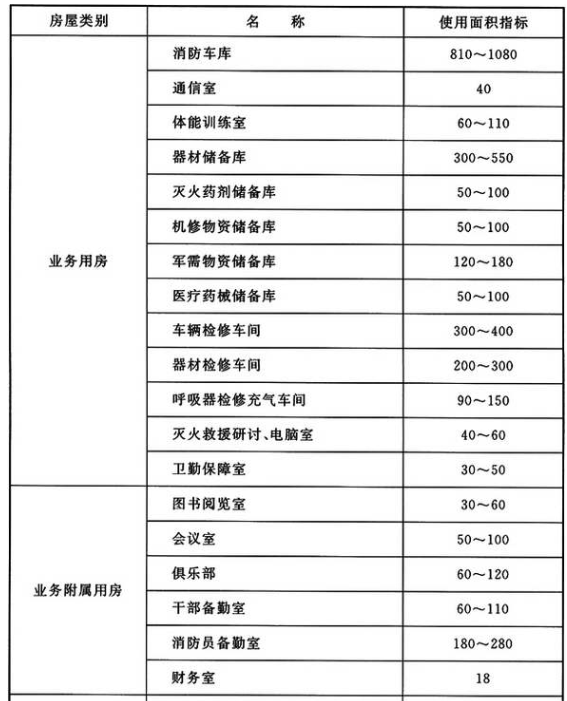 消防站各种用房使用面积的确定,主要参照中央军委2009年11月修订下发的《中国人民解放军营房建筑面积标准》以及原建设部颁发的《办公建筑设计规范》JGJ