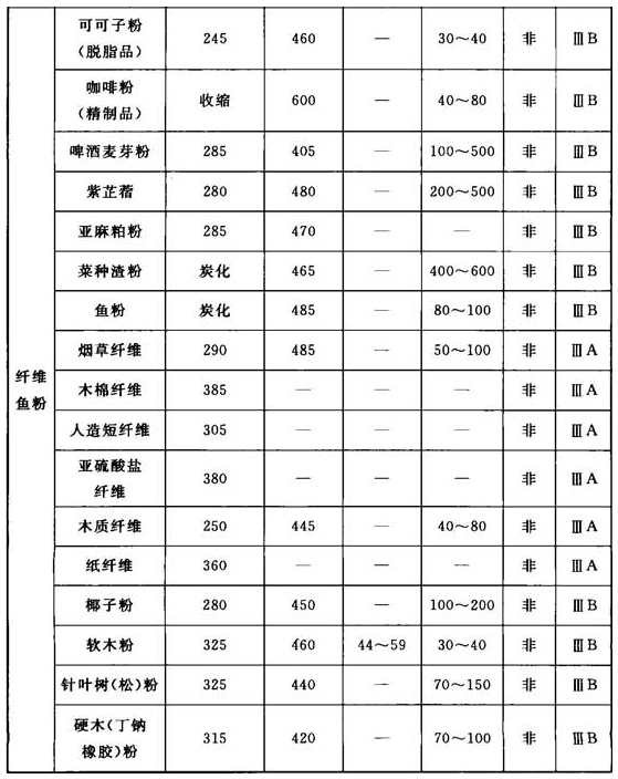 注:危险性质栏中,用“导”表示导电性粉尘,用“非”表示非导电性粉尘。