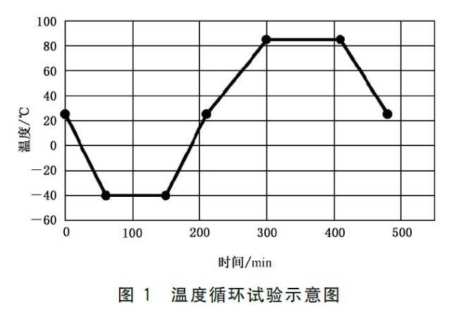 放入温度箱中,温度箱温度按照表1和图1进行调节,循环次数5次。