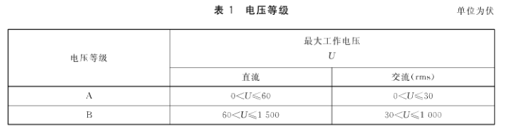 对于相互传导连接的A级电压电路和B级电压电路,当电路中直流带电部件的一极与电平台相连,且其他任一带电部分与这一极的最大电压值不大于30V(a.c.)(rms)且不大于60V(d.c.),则该传导连接电路不完全属于B级电压电路,只有以B级电压运行的部分才被认定为B级电压电路。