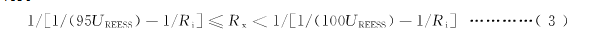 按照5.1.4.1的要求,若最小绝缘电阻要求为500Q/V,则将可调节电阻器的阻值减小到目标值Rx,Rx按照式(4)计算得到: