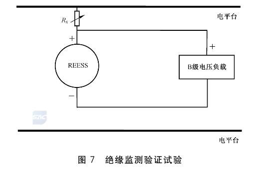 测试过程中,车辆B级电压电路应处于接通状态,且绝缘监测功能或设备已启动。测试中将使用可调节电阻器(例如:变阻箱等),可调节电阻器的最大电阻值≥10MΩ。