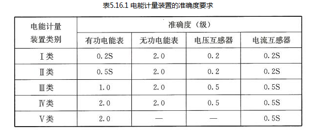 3 电能计量装置的准确度不应低于表5.16.1的规定。