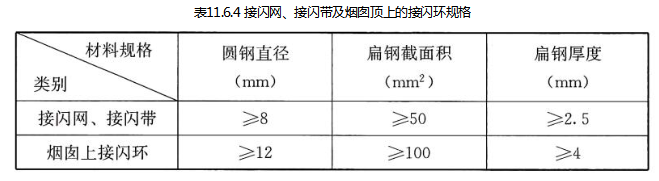 接闪杆宜采用热浸镀锌圆钢或钢管制成,其直径应符合表11.6.3的规定,钢管壁厚不应小于2.5mm。