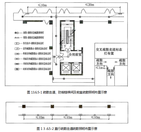 疏散标志灯的设置位置可按图13.6.5-1和图13.6.5-2布置 。