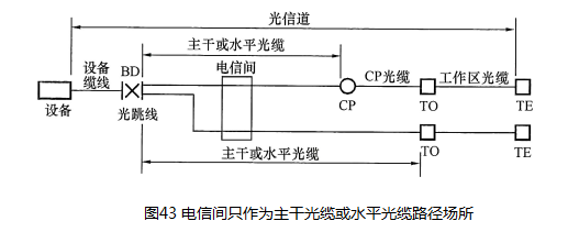 电信间只作为主干光缆或水平光缆路径场所时,光纤信道构成如图43所示。