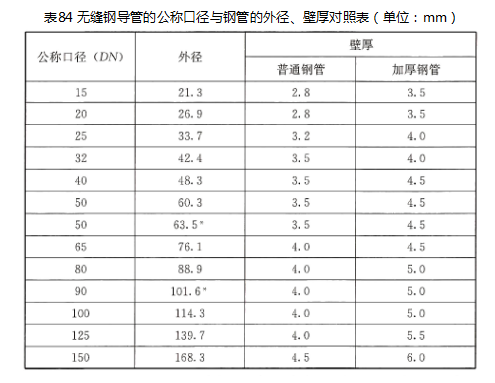 表中其他的公称口径普通无缝钢管均为通用系列管材。