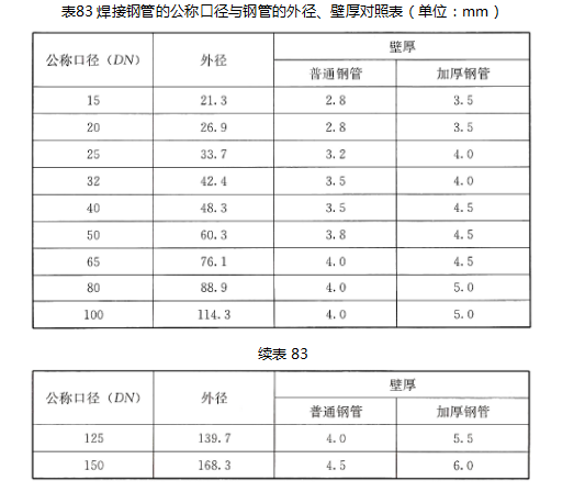 注:表中的公称口径即为公称直径,其系近似内径的名义尺寸,但不表示外径减去两个壁厚所得的内径。