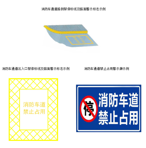 附录F (资料性附录)消防车通道警示标线标志示例