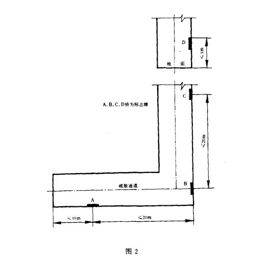 对于地下工程,“紧急出口”标志宜设置在通道的两侧部及拐弯处的墙面上,标志的中心点距地面高度应在1.0 m~1.2