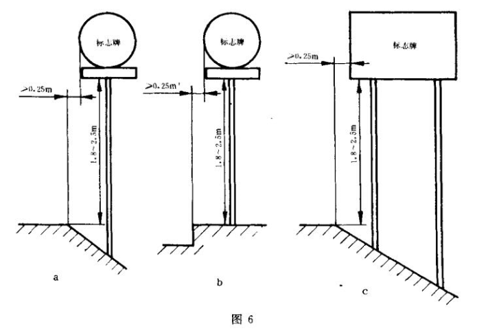 6.11.2.1 设置在道路边缘的标志牌,其内边缘距路面(或路肩)边缘不应小于0.25