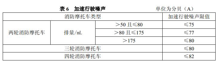 消防摩托车加速行驶噪声的测定应按6.1.6进行,加速行驶噪声应符合表6的规定。