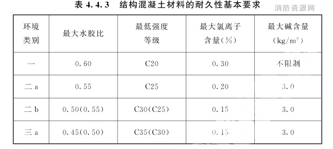 4.4.1 混凝土工程所用的主要建筑材料应符合本标准第4.1节的有关要求,并应符合下列规定: 1 冷间内配置混凝土的水泥应符合设计要求;不同品种水泥不得混合使用,同一构件不得使用两种及两种以上品种的水泥;所用水泥强度等级不应小于42.5; 2 温度介﹣40℃以下工作环境混凝土的水泥选用应符合现行国家标《低温环境混凝土应用技术规范》GB51081的有关规定; 3 温度介于﹣40℃以下工作环境的混凝土,混凝土不得使用海砂及海水或再生水拌制; 4 温度介于﹣40℃以下工作环境的混凝土外加剂、掺和料的使用应符合现行国家标准《低温环境混凝土应用技术规范》GB51081的有关规定。4.4.2 混凝土工程的施工及验收除应执行本标准规定外,尚应符合现行国家标准《混凝土结构工程施工质量验收规范》GB50204的有关规定。4.4.3 设计使用年限为50年的冷库工程混凝土结构,结构混凝土材料的耐久性基本要求宜符合表4.4.3的规定。