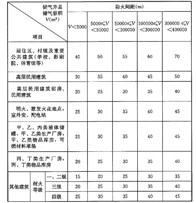 4.2.1 明确了压缩天然气储气井与站外建(构)筑物的防火间距,尤其是对储配站内采用储气井进行较大规模储气时的防火间距作出了规定。