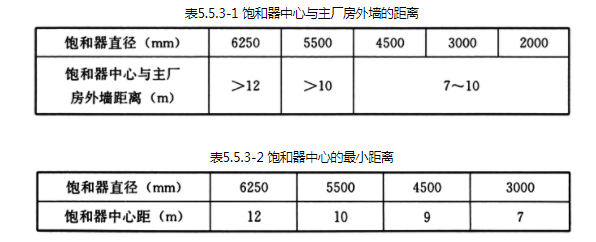 1 饱和器中心与主厂房外墙的距离,应根据饱和器直径确定,并宜符合表5.5.3-1的规定;