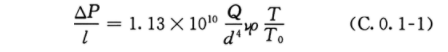 根据燃气管道不同材质,其单位长度摩擦阻力损失采用下列各式计算: