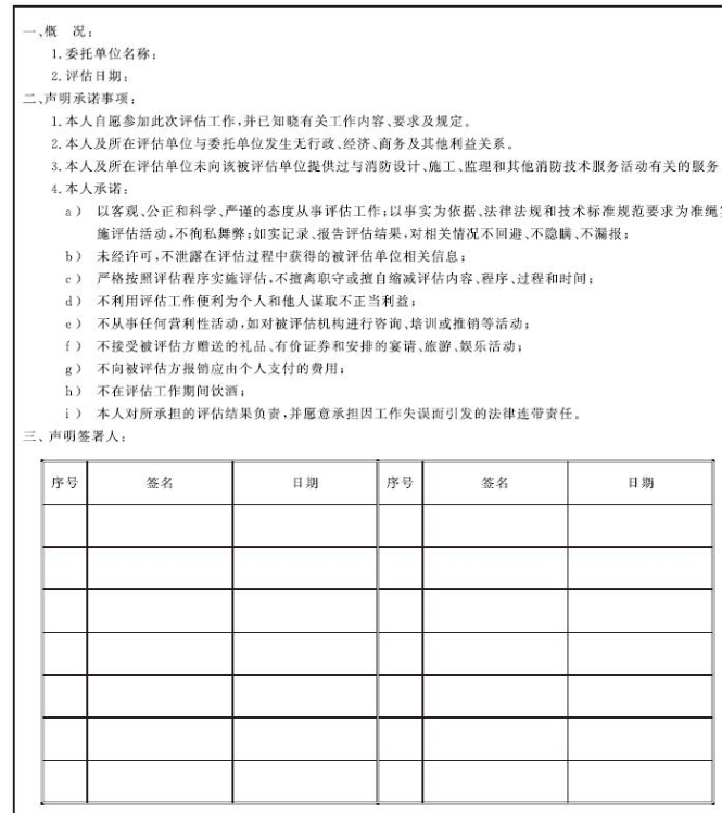 附录A(资料性) 消防安全评估人员公正性、保密声明示例