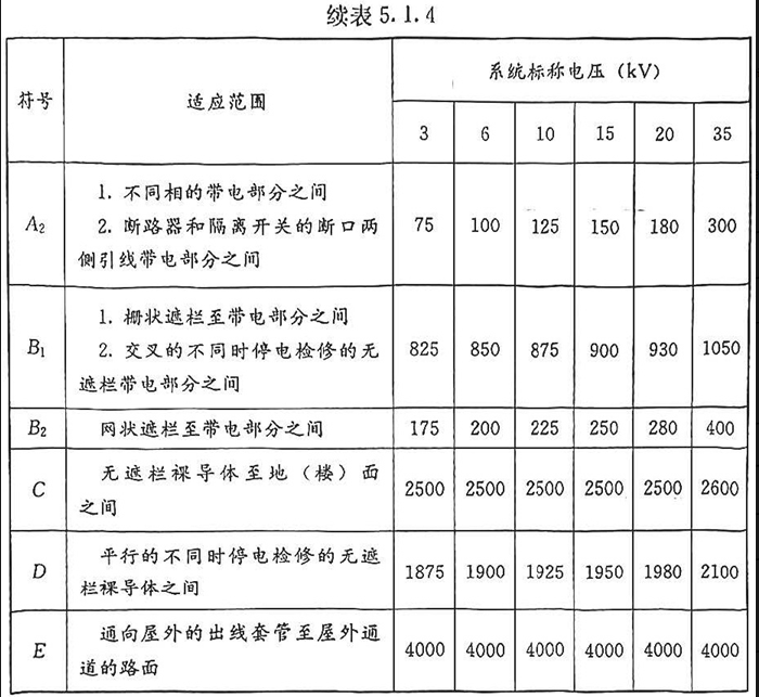 2 3kV~35kV室内有裸导体配电装置的安全净距应满足现行国家相关标准的规定。