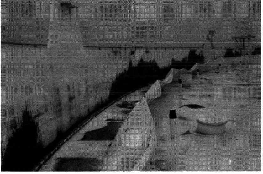 1 目前工程中使用的低倍数泡沫产生器分为横式和立式两种。两者由于安装方式及制造材料的不同,在火灾下会表现出不同的特点。横式泡沫产生器在储罐上水平安装,出口采用法兰连接不小于1m的直管段,进口和管道采用螺纹连接。横式泡沫产生器一般采用铸铁铸造而成,少数采用不锈钢。由于安装特点,在储罐受到爆炸冲击时,横式泡沫产生器会受到力矩作用,再加上其进口连接比较脆弱,采用的材料韧性较差,使得该类型的产生器极易遭到破坏,尤其是目前不少工程中将其安装到了罐壁顶以上,更经不住储罐爆炸的影响。即便是在相对安全的外浮顶储罐,横式产生器也具有被破坏的风险。如2010年3月3日,我国某国家石油储备基地一个10×10m4原油储罐因雷击引起密封圈内的油气爆炸着火,泡沫堰板约80%向储罐中心倾倒(图2),储罐上12个横式泡沫产生器有11个遭到破坏(图3)。立式泡沫产生器为钢制的,有的还采用了奥氏体不锈钢,韧性较好。其泡沫室和产生器本体有一体式的,也有分体式的。由于其在储罐上铅垂安装,和其他管道均采用法兰连接,受力形式明显比横式泡沫产生器合理。因此,考虑到固定顶储罐和内浮顶储罐的火灾模式,规定应选用立式产生器,其在固定顶储罐上的安装方式参见图4。