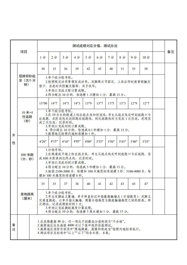 4.国家综合性消防救援队伍消防员招录体能测试、岗位适应性测试项目及标准