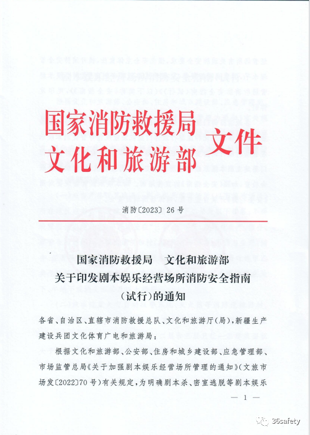 根据文化和旅游部、公安部、住房和城乡建设部、应急管理部、市场监管总局《关于加强剧本娱乐经营场所管理的通知》有关规定,为明确剧本杀、密室逃脱等剧本娱乐经营场所有关消防安全要求,强化安全主体责任,提升场所消防安全管理水平,制定本消防安全指南。