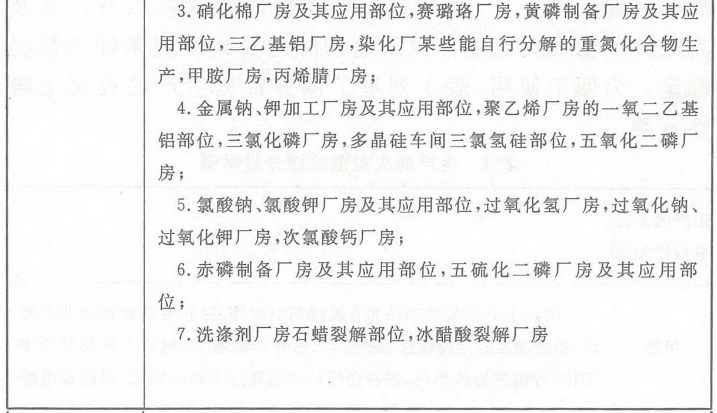 “甲类”第3项:生产中的物质在常温下可以逐渐分解,释放出大量的可燃气体并且迅速放热引起燃烧,或者物质与空气接触后能发生猛烈的氧化作用,同时放出大量的热。温度越高,氧化反应速度越快,产生的热越多,使温度升高越快,如此互为因果而引起燃烧或爆炸,如硝化棉、赛璐珞、黄磷等的生产。